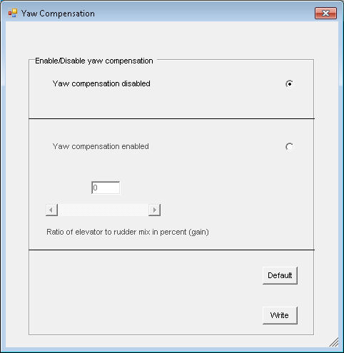 Elevator, Rudder, Pitch, CH5 (DCP) with 0 to 100% range;