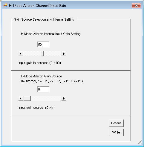 Elevator, Rudder, Pitch, CH5 with 0 to 100% range
