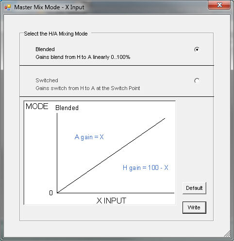 A-mode; Selected by X-input 0..100%; Also H-mode fixed |