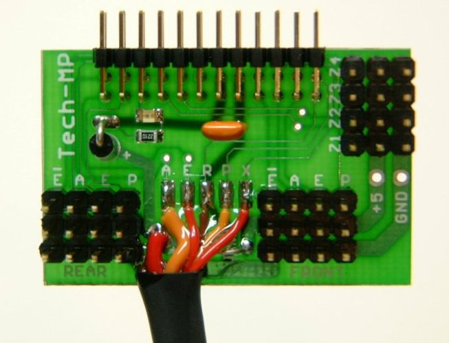 headers. The servo signal wires must be facing the the labels A, E,
